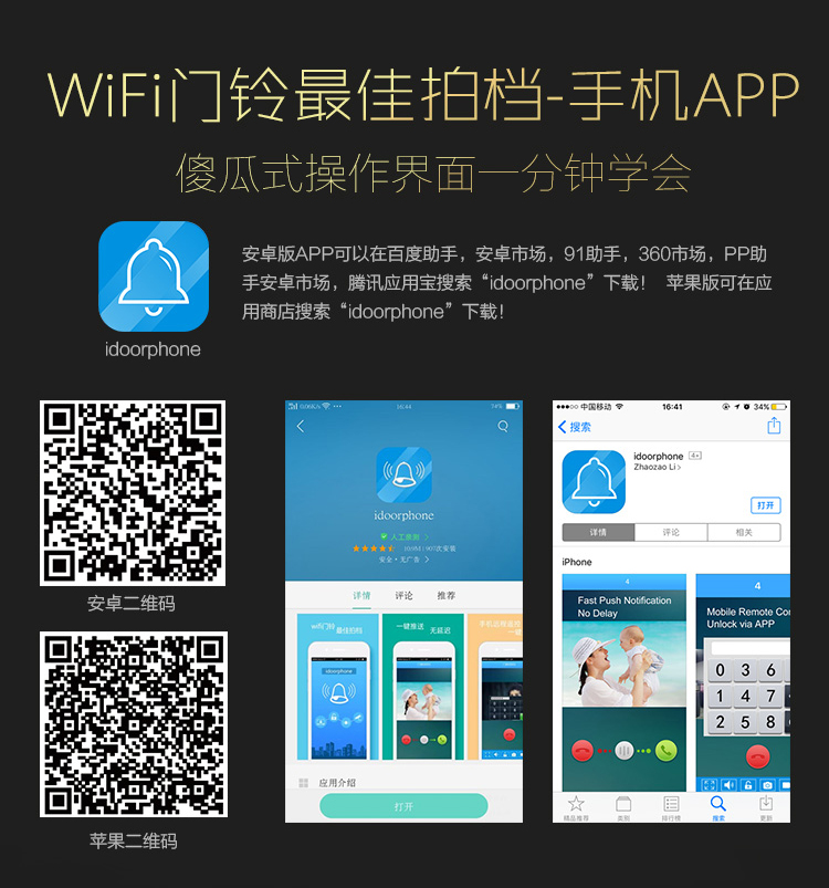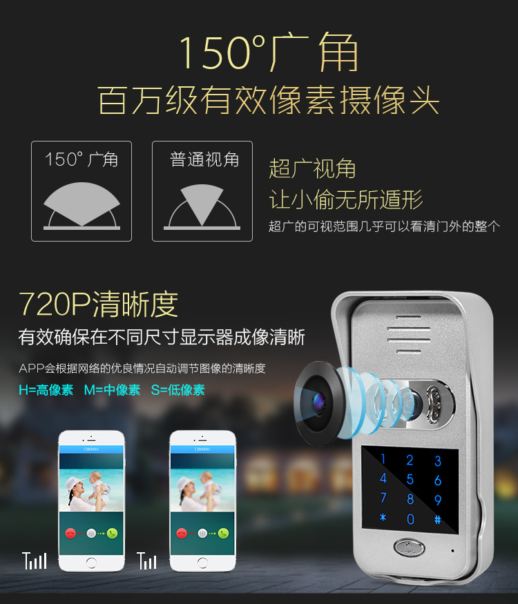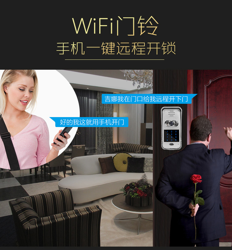 高清无线wifi可视对讲门铃手机远程监控家用防盗密码开锁门禁